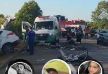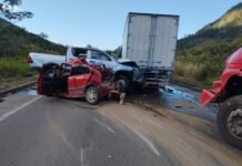 Grave acidente entre três carros interdita BR-259 em João Neiva