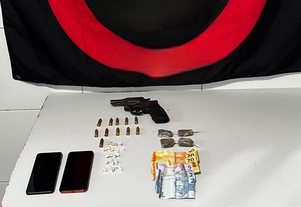 Na ação, foram apreendidos um revólver calibre .38, munições, drogas fracionadas para venda e celulares. Dois suspeitos foram detidos, entre eles outro adolescente envolvido no tráfico local.