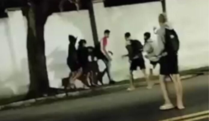 Imagens compartilhadas nas redes sociais mostram o instante em que o jovem recebeu empurrões, socos e chutes.