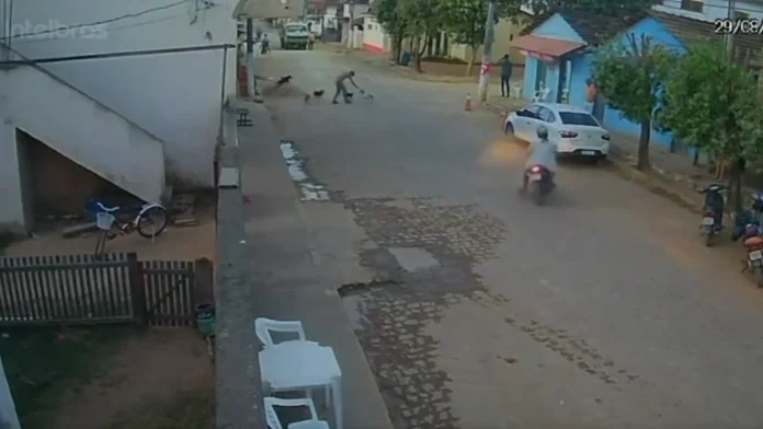 A agressão foi registrada por câmeras de videomonitoramento e as imagens foram divulgadas nas redes sociais pelo subcomandante do 8º Batalhão da Polícia Militar, major Carlos Balbino.