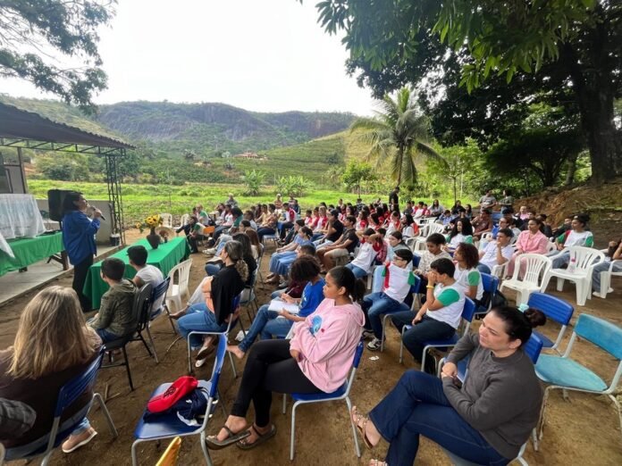 O seminário também destacou o protagonismo estudantil. Alunas do CEIER de Águia Branca atuaram como repórteres do projeto CEIER Rural, realizando entrevistas com palestrantes, guardiões e gestores.