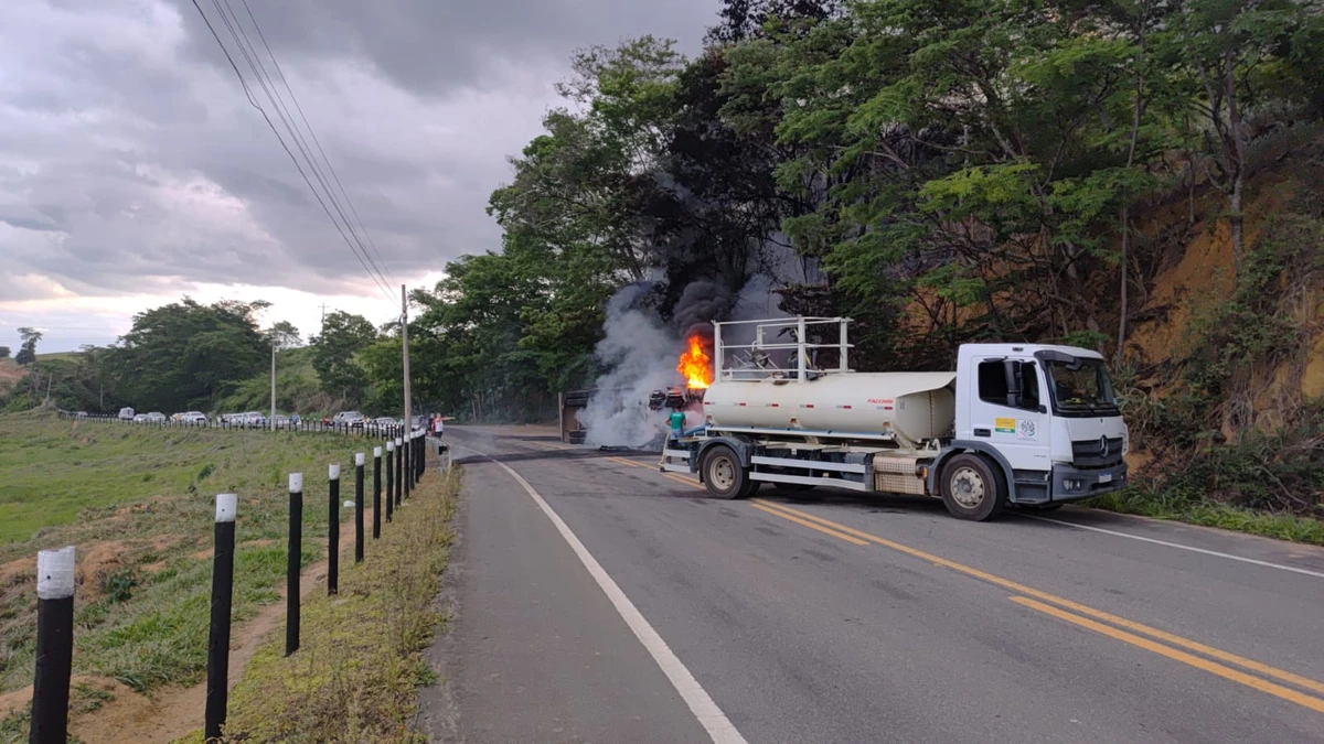 Segundo a Polícia Militar, o motorista conseguiu deixar a cabine antes da propagação do fogo, mas ficou ferido e foi encaminhado a um hospital da região.