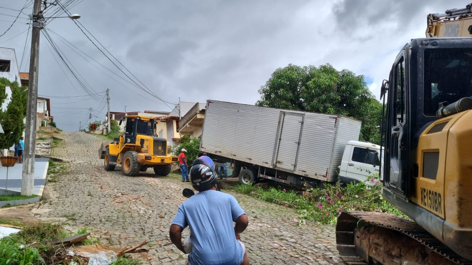 O incidente chamou a atenção de quem passava pela região e serve de alerta para os riscos em ruas com declive acentuado e pavimentação irregular.