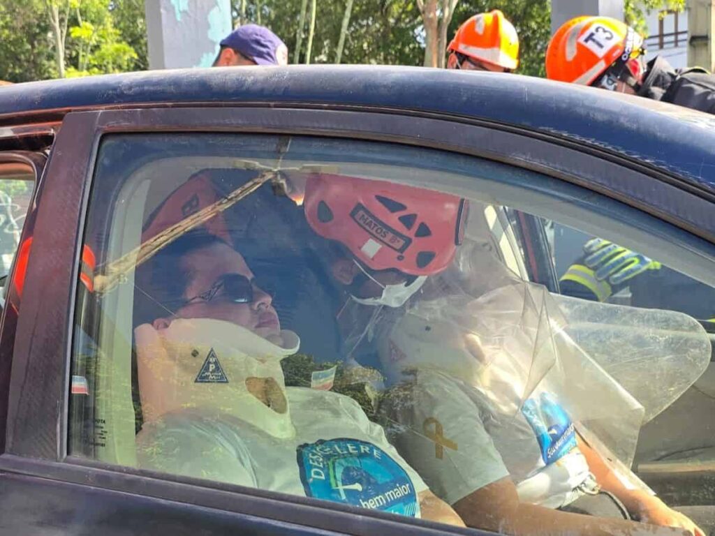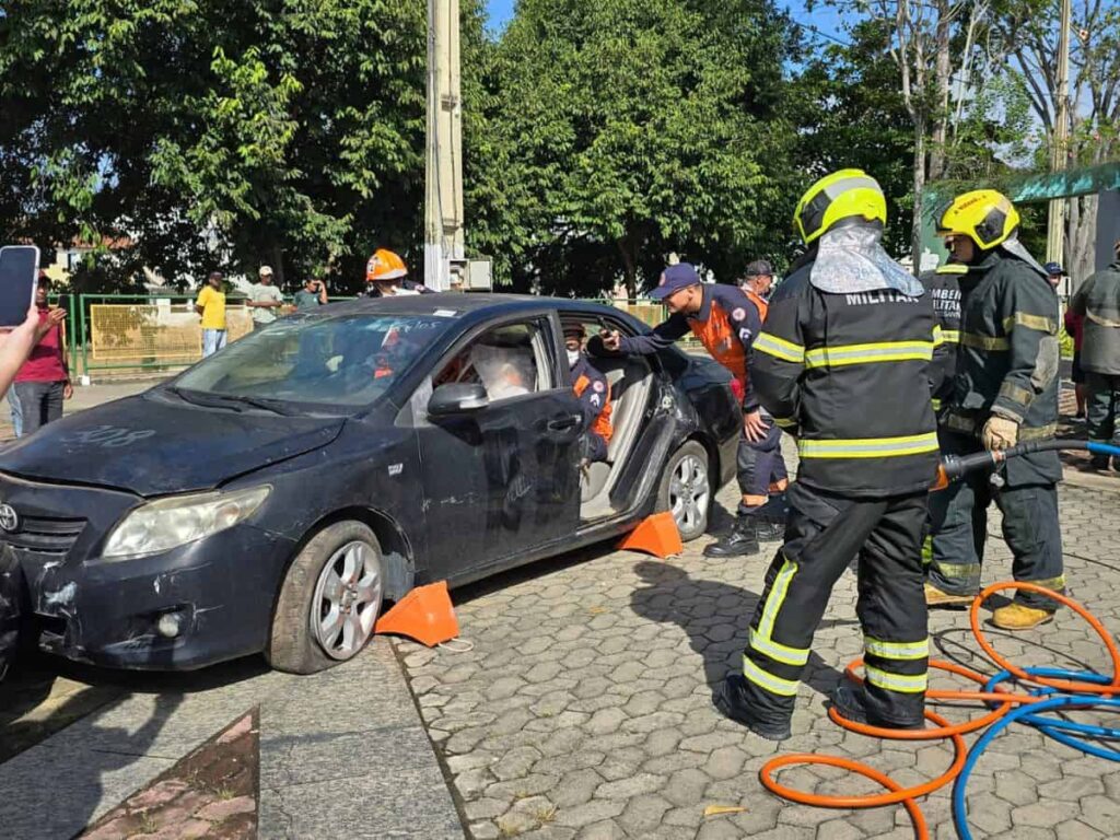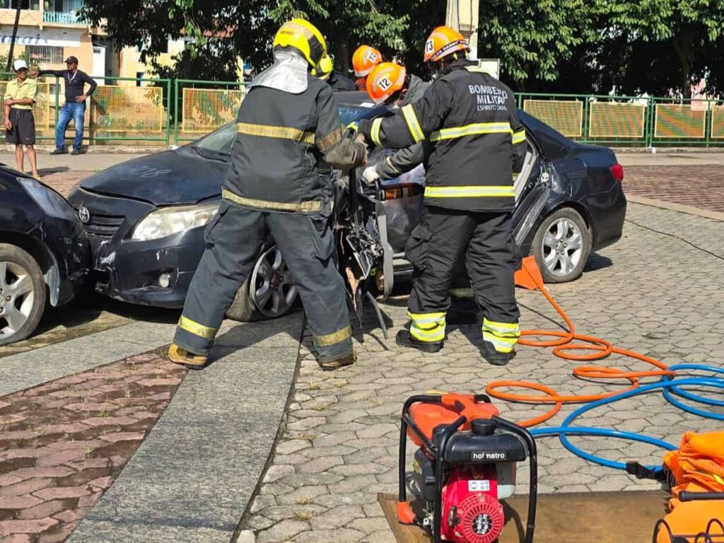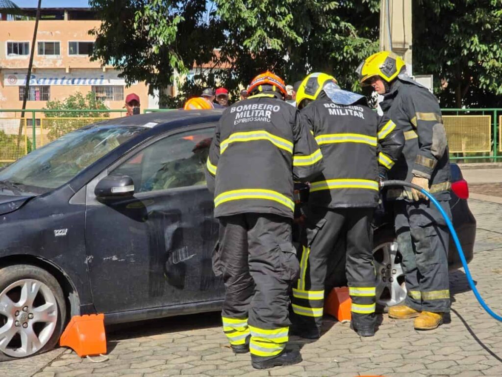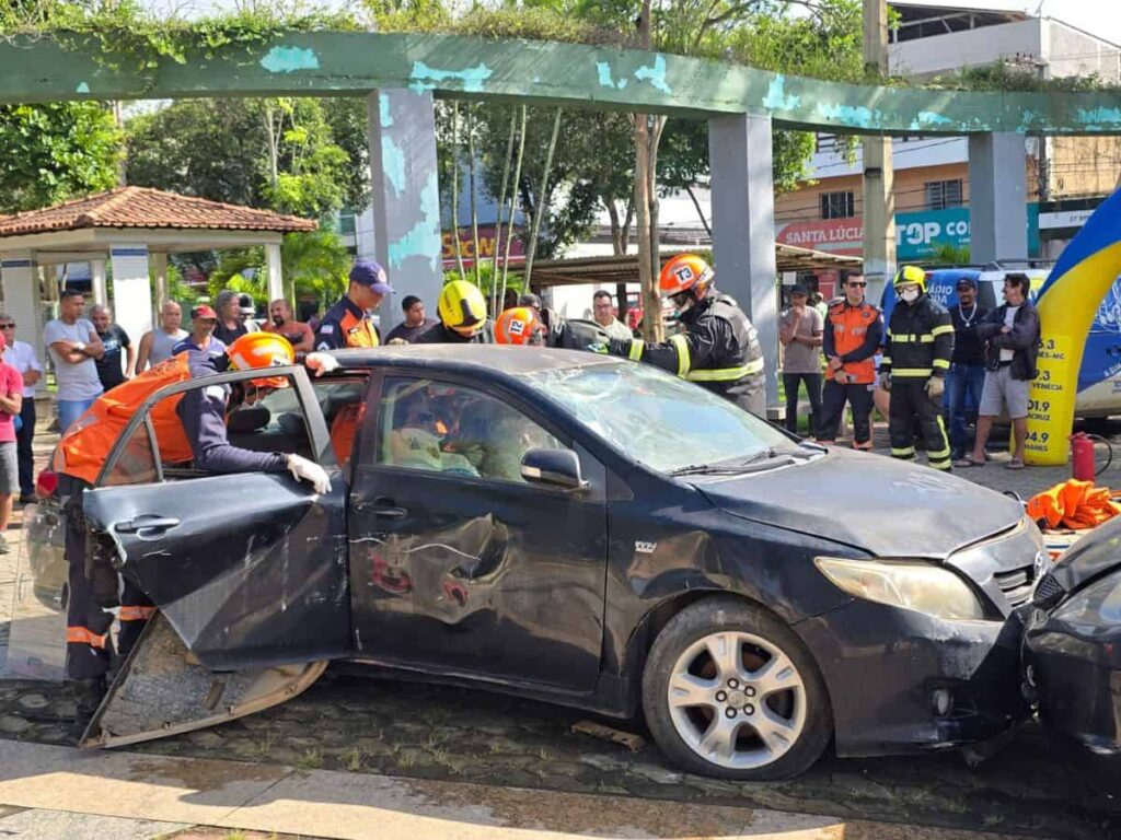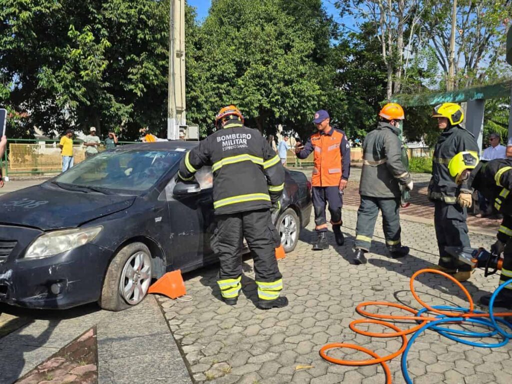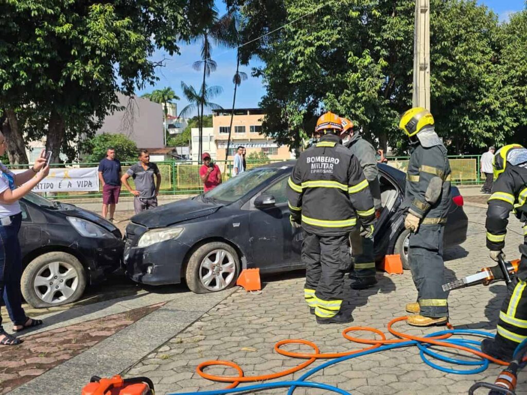 Corpo de Bombeiros realiza simulação de resgate veicular dentro da programação do Maio Amarelo em Nova Venécia