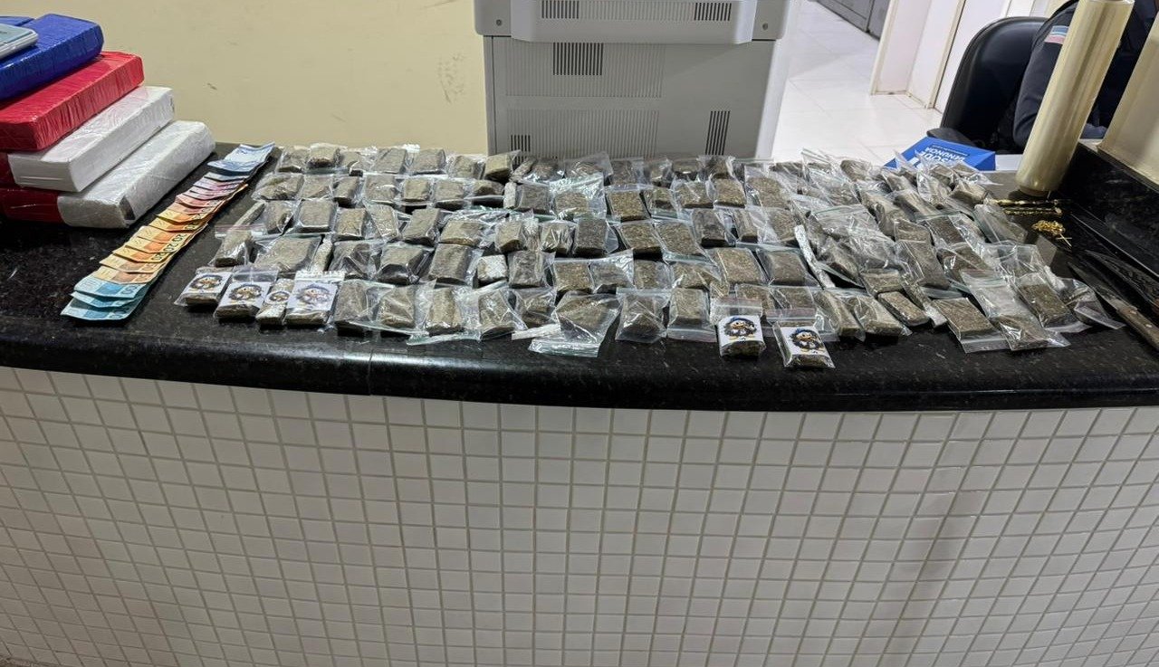 Os policiais constataram ainda que algumas porções de maconha estavam acondicionadas em embalagens de lanche e armazenadas em uma bolsa de delivery, o que indica a possibilidade de que o entorpecente fosse comercializado simulando entregas de alimentos.