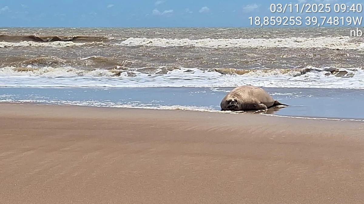 Um elefante-marinho foi encontrado na manhã deste domingo (2), na Praia de Urussuquara, em São Mateus, Região Norte do Espírito Santo. O animal estava vagando pela areia da praia quando foi visto de longe por testemunhas.