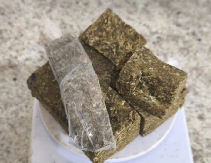 Com o apoio da equipe K9, o cão policial indicou locais onde parte do material estava enterrado. Foram encontradas 306 buchas de maconha embaladas de forma padronizada, prontas para a venda, além de cinco tabletes da mesma droga, totalizando cerca de 675 gramas.