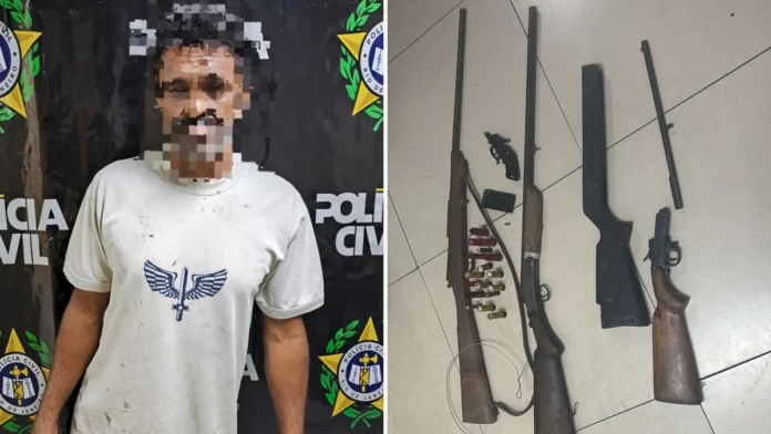 Durante a operação, os policiais apreenderam cinco armas de fogo, todas ilegais, na residência do suspeito. Por isso, ele também foi preso em flagrante por posse ilegal de armas. Vander Aloir Assunção foi encaminhado à unidade policial no Rio de Janeiro, onde permanece à disposição da Justiça.