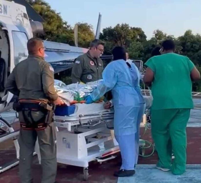 Devido à gravidade dos ferimentos, o Núcleo de Operações e Transporte Aéreo (NOTAER) foi acionado para realizar a remoção aérea do paciente.