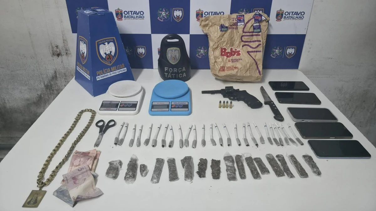 Segundo a Polícia Militar, a equipe chegou ao local após denúncias de que os suspeitos estariam fracionando e embalando maconha para venda. Ao entrarem na residência, os policiais encontraram os cinco envolvidos sentados ao redor de uma mesa improvisada, onde foram apreendidos 25 cigarros de maconha prontos para comercialização e 14 porções da droga.