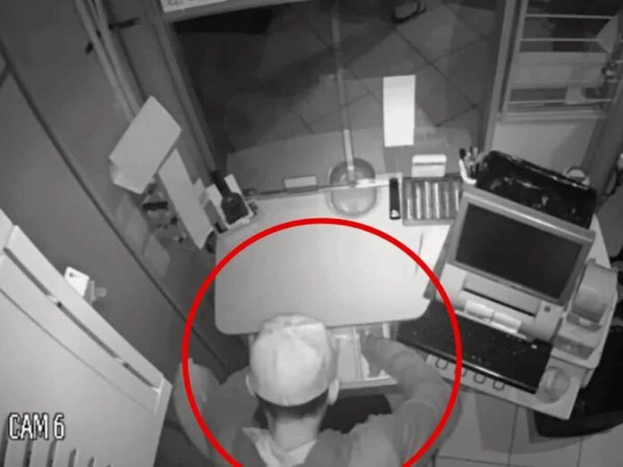 A ação criminosa foi parcialmente registrada por uma câmera de videomonitoramento do estabelecimento. As imagens mostram que, por volta das 3h13 da manhã, um dos ladrões já estava dentro da lotérica revirando gavetas em busca de dinheiro e outros objetos de valor, após o grupo ter arrombado a fechadura principal para entrar.
