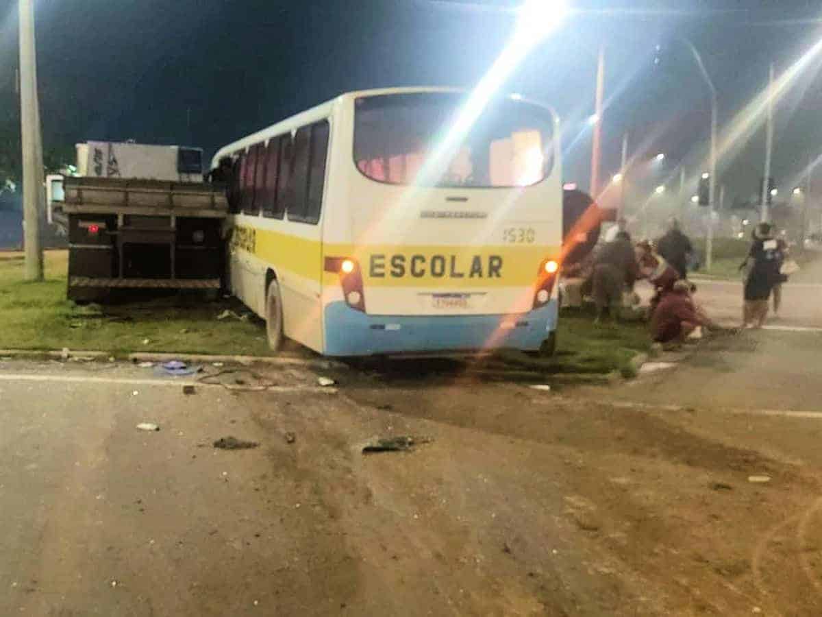 Segundo a Polícia Rodoviária Federal (PRF), o acidente ocorreu quando a carreta Volkswagen 24.280, carregada com blocos de rocha, avançou um semáforo vermelho e atingiu o ônibus Mercedes Benz na lateral esquerda frontal. As câmeras de segurança registraram o momento da colisão. O motorista do ônibus, que não estava usando o cinto de segurança, foi arremessado para fora do veículo e chegou a ser socorrido, mas morreu durante o trajeto ao hospital.