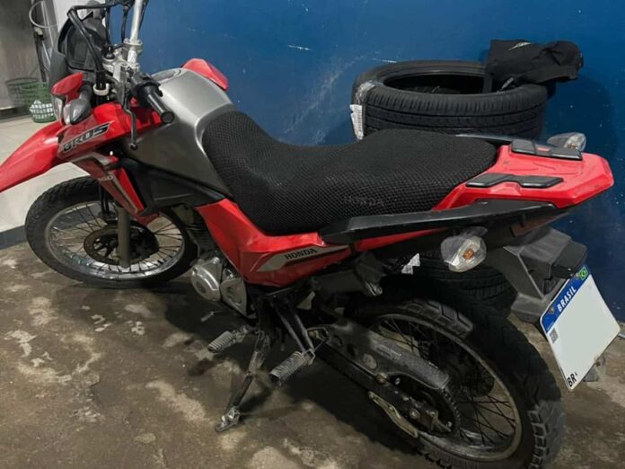 A equipe de Patrulhamento Tático Motorizado desconfiou de uma motocicleta Honda NXR Bros 160 com placa do estado de São Paulo. A procedência da placa levantou suspeitas e motivou os policiais a darem ordem de parada para realizar uma averiguação mais detalhada do veículo.