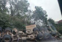 Carreta tomba ao fazer curva na BR-101 em Ibiraçu