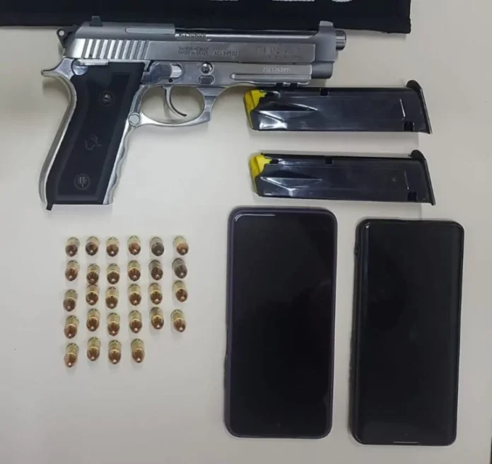 Dois suspeitos, de 41 e 46 anos, foram presos no bairro Centro, em São Domingos do Norte. Na residência do homem de 41 anos, os policiais apreenderam uma pistola da marca Taurus e 28 munições calibre 9 mm.
