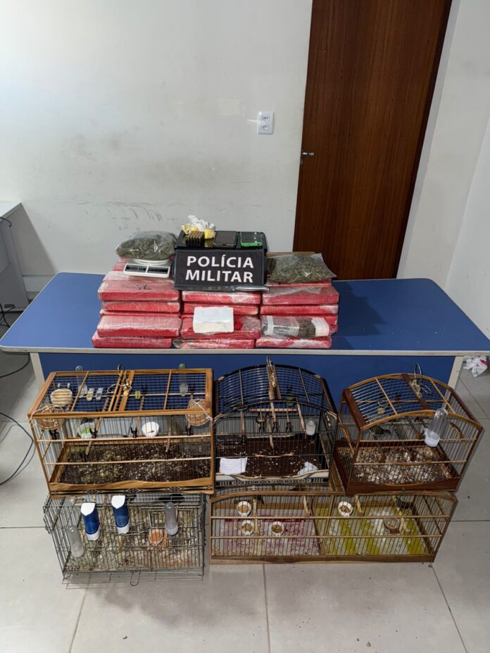 Policiais militares apreenderam 66 tabletes de maconha, 40 munições calibre 9mm, 14 aves silvestres sem anilhas, entre outros materiais, na tarde dessa segunda-feira (25) no bairro Ayrton Senna, São Mateus. Uma mulher de 18 anos e um homem de 28 foram detidos.