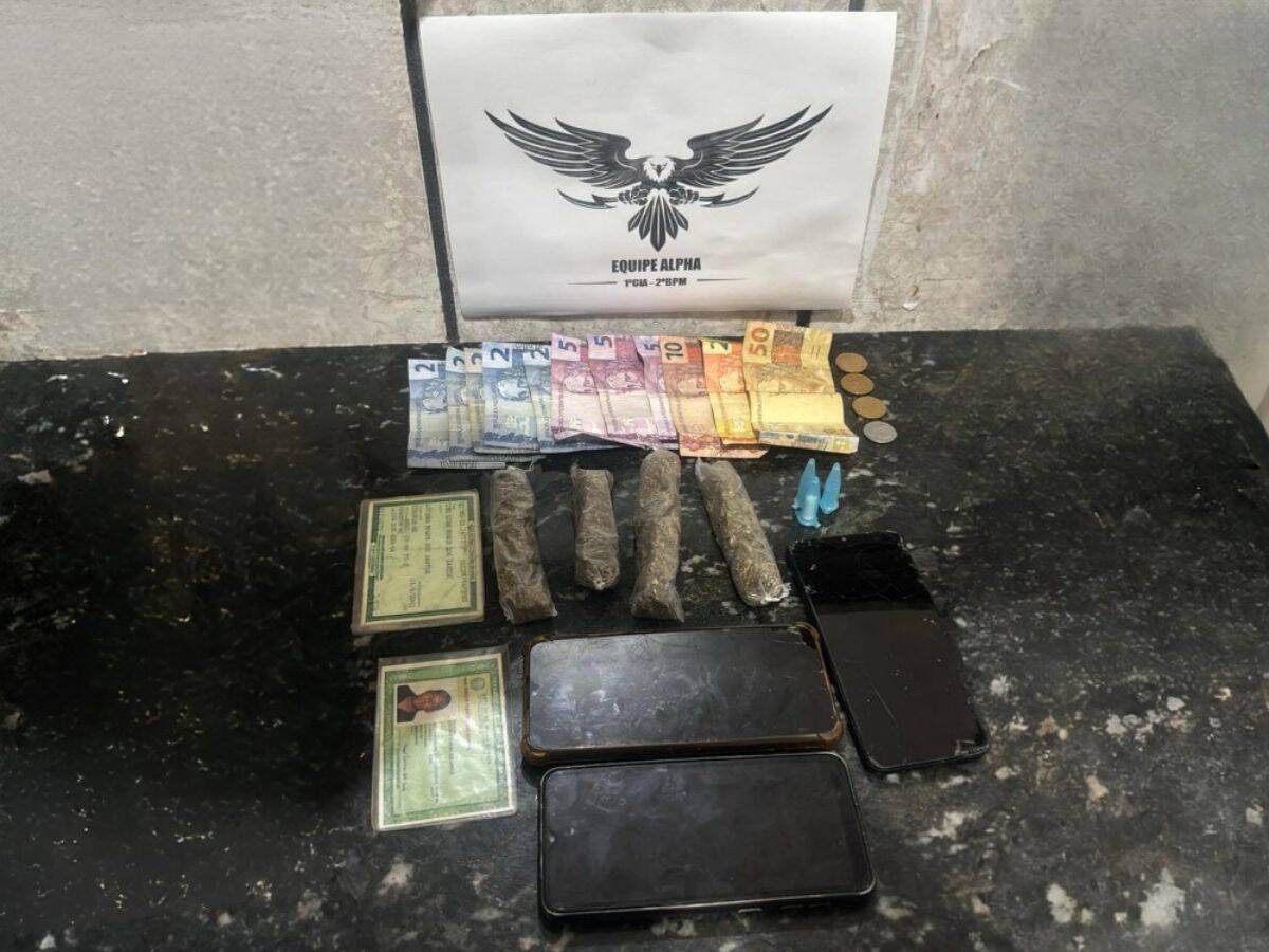 Durante a abordagem, um dos suspeitos confessou ser usuário e indicou o local onde havia jogado um pino de cocaína. Nos lugares onde outros dois homens estavam sentados, os policiais encontraram pacotes contendo uma quantidade significativa de maconha, já fracionada para comercialização, além de um celular. Os detidos admitiram ter se desfeito da droga ao notarem a aproximação policial por medo da prisão.