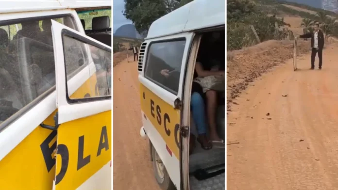 Como o trajeto inclui trechos de estrada de chão com muitos buracos, o impacto constante pode ter agravado o problema e contribuído para o desencaixe da porta.