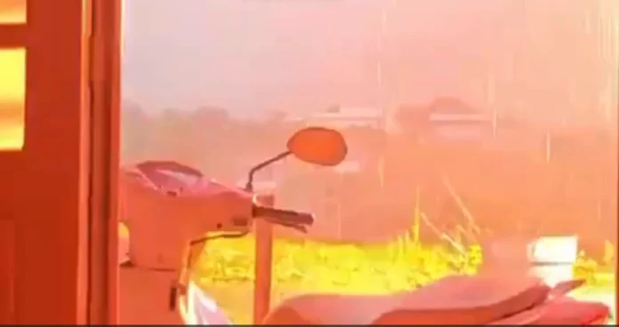 O empresário Lorenzo Correa Rodrigues, morador da casa, gravou o momento em que a descarga elétrica atingiu a árvore, deixando rastros visíveis e afetando a infraestrutura da residência.