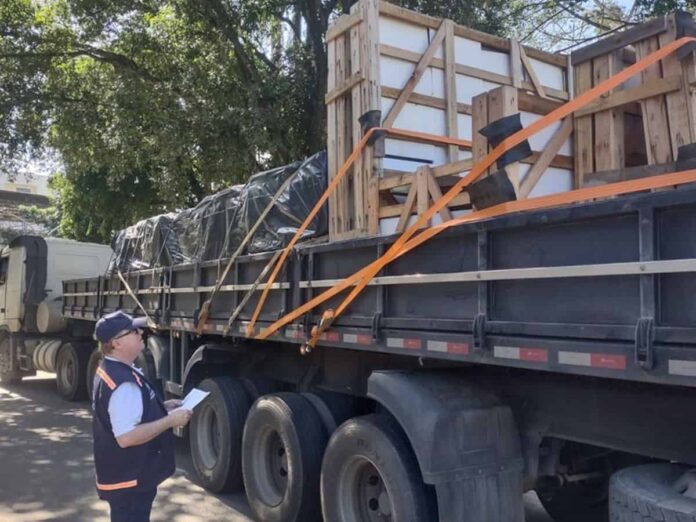 As irregularidades identificadas envolveram o transporte de 60 metros cúbicos de EPS T1R (isopor utilizado na construção civil) e 15 toneladas de carbonato de sódio anidro, ambos sem a documentação fiscal obrigatória.
