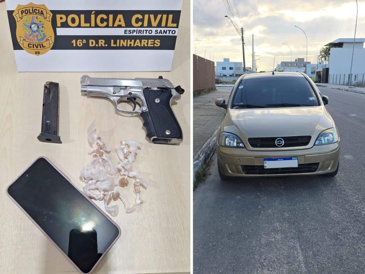 A Polícia Civil do Espírito Santo (PCES), por meio da Delegacia Especializada de Homicídios e Proteção à Pessoa (DHPP) de Linhares, prendeu em flagrante um homem de 22 anos por porte ilegal de arma de fogo e tráfico de entorpecentes, durante um interrogatório realizado na última quinta-feira (24), por volta das 12h40, no bairro Três Barras, em Linhares.