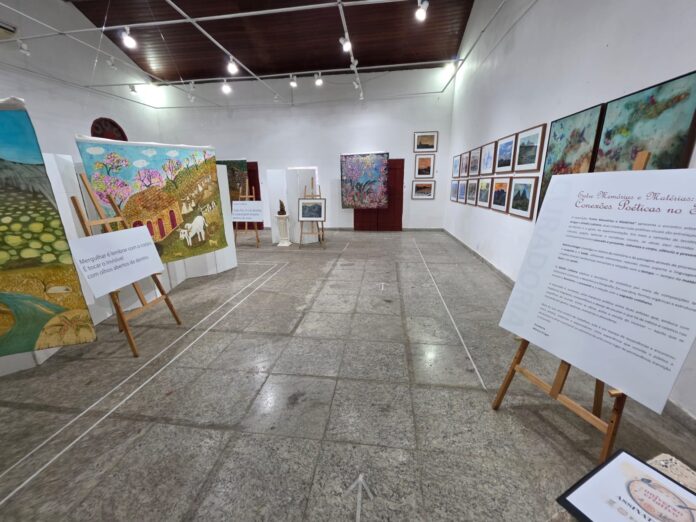 O grande destaque da programação é a exposição “Entre Memórias e Matérias”, das artistas Mônica Krüger e Gledis Lubiana. A mostra propõe um diálogo sensível entre passado e presente, corpo e natureza, memória e matéria — tudo por meio de composições que envolvem tecidos, pigmentos naturais, papéis e texturas que convidam à reflexão e à contemplação.