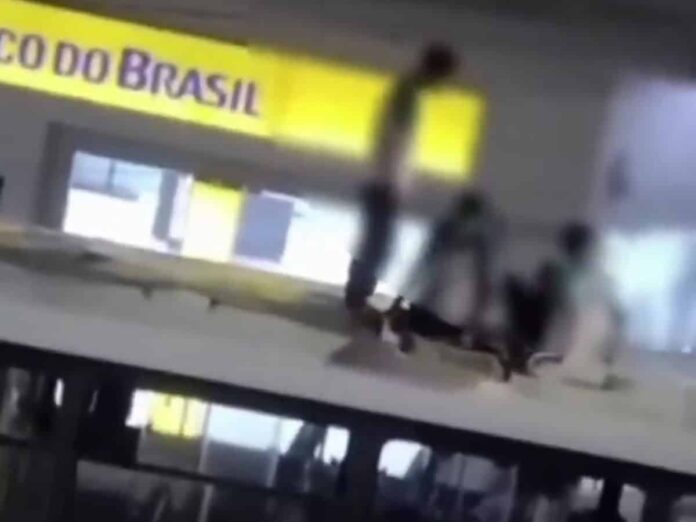Um vídeo divulgado nas redes sociais mostrou alunos subindo ao teto de um ônibus escolar estacionado na Avenida Nove de Agosto, em Jaguaré. O fato ocorreu na semana passada, em frente a uma agência bancária.