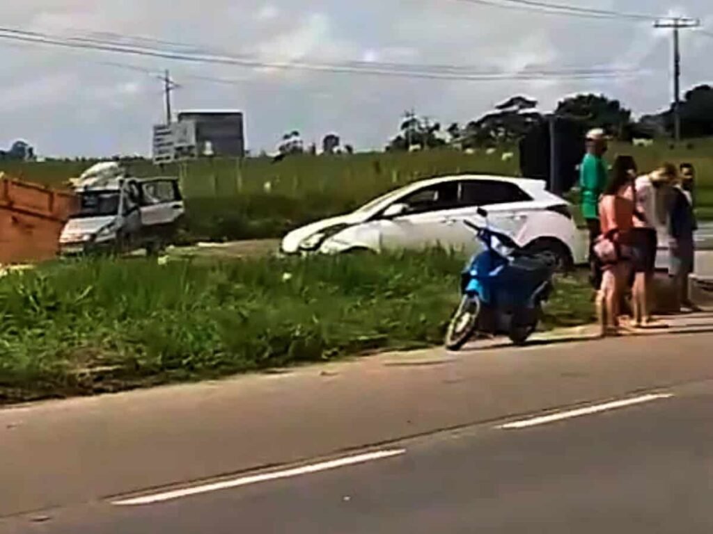 Três pessoas ficaram feridas após uma colisão entre dois veículos na manhã deste sábado (19), por volta das 8h50, no km 137 da BR-101, em Linhares, próximo à entrada de uma lagoa.