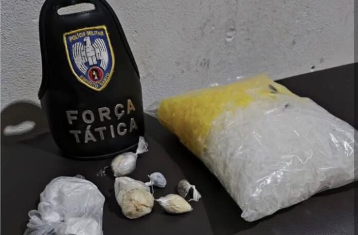 Os militares realizaram acompanhamento a pé, mas o suspeito não foi localizado. Dentro da mochila foram encontradas porções de substâncias semelhantes a cocaína, crack e maconha, além de materiais utilizados para o preparo e embalagem de drogas, como microtubos e sacolas plásticas.