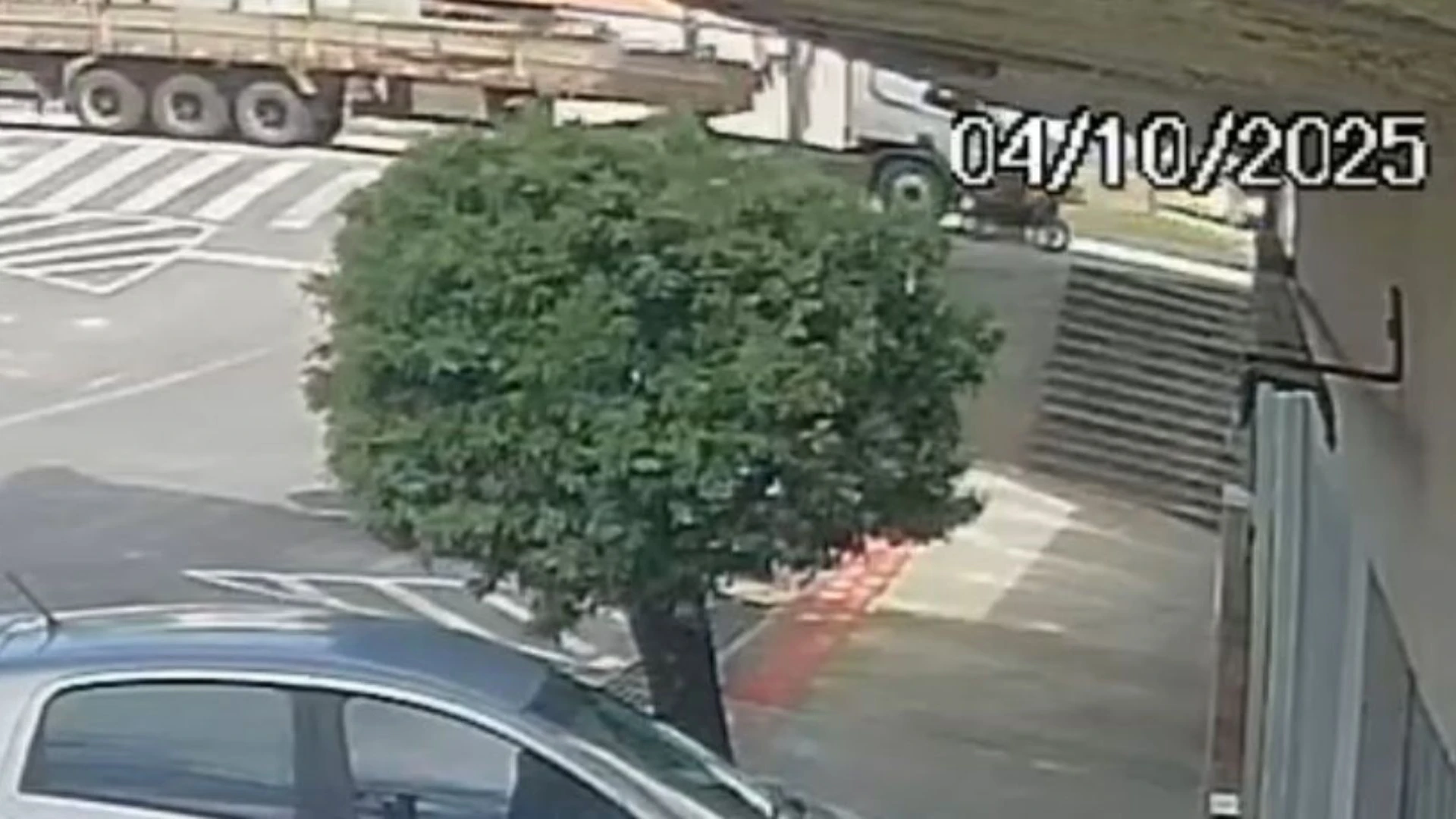 O momento exato da colisão não foi registrado pela câmera. De acordo com a PRF, o motociclista teria acessado a rodovia sem parar e sem respeitar a prioridade de tráfego.
